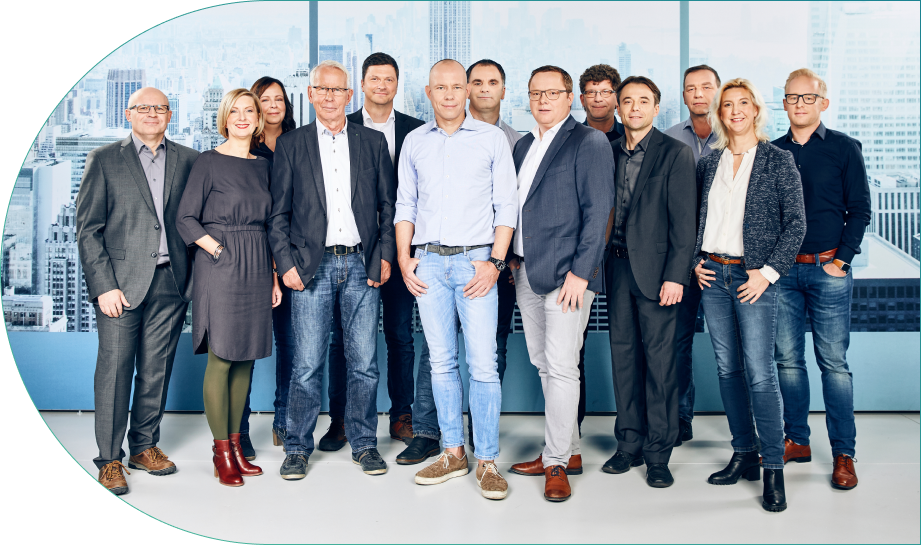 Robby Palmér (Head of IT), Nina Gronemann (Head of Design), Sabine Müller (Team Leader Cologne), Hartmut Bunsen (Managing Director), Lars Hoffmann (Head of Sales), Raimo Bunsen (Managing Director), René Schneider (Head of System Stand Construction), Björn Duphorn (Managing Director), Jörg Fischer (Head of Purchasing), Dirk Knäbel (Head of Individual Construction), Tom Koza (Warehouse Manager) , Dorit Sieber (Head of Human Resource Development), David Oost (Branch Manager Düsseldorf)
