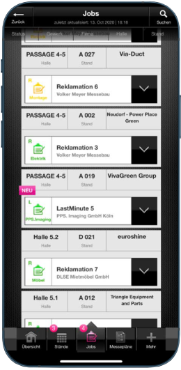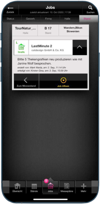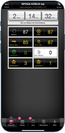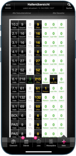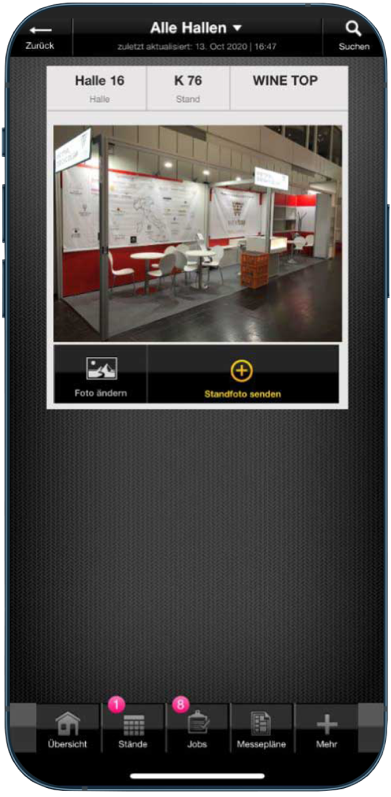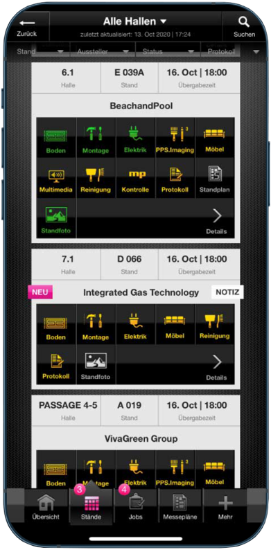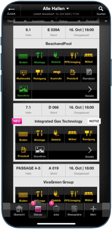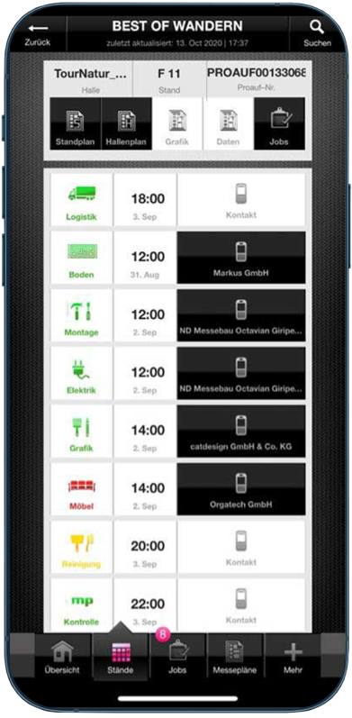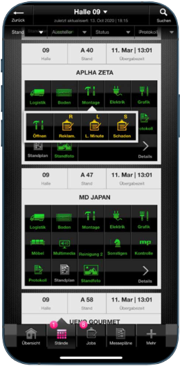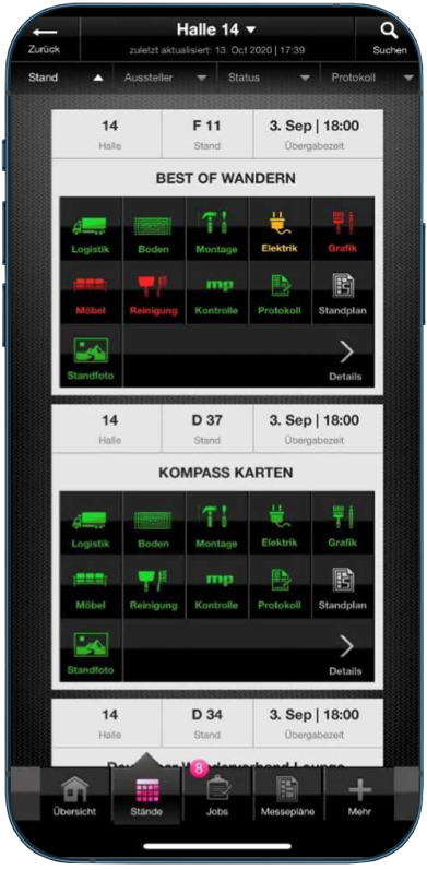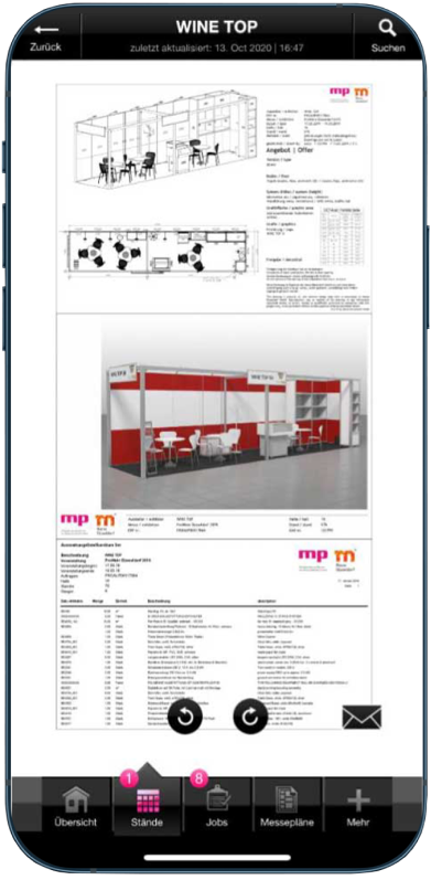 All stand information at glance (floor plan, renderings, parts list, graphics etc.)